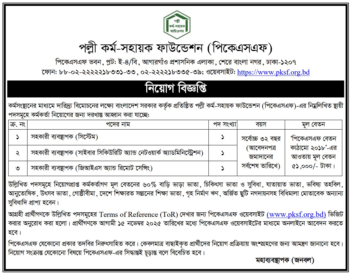 PKSF Assistant Manager JOB